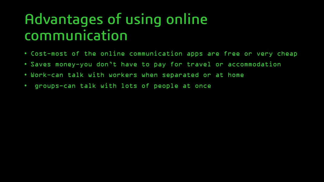 For Unit 1 on my college course i had to take a look at all kinds of features of the online world including what makes up the internet, cloud storage, threats to online presance, online presance, server/user side storage, server access, ubiquitous computing and much more. and in doing this i leared all about instant messaging and how cloud storage works as well as pros and cons to cloud storage 1 pro being access across any device with an internet connection and a con being no wifi no software.